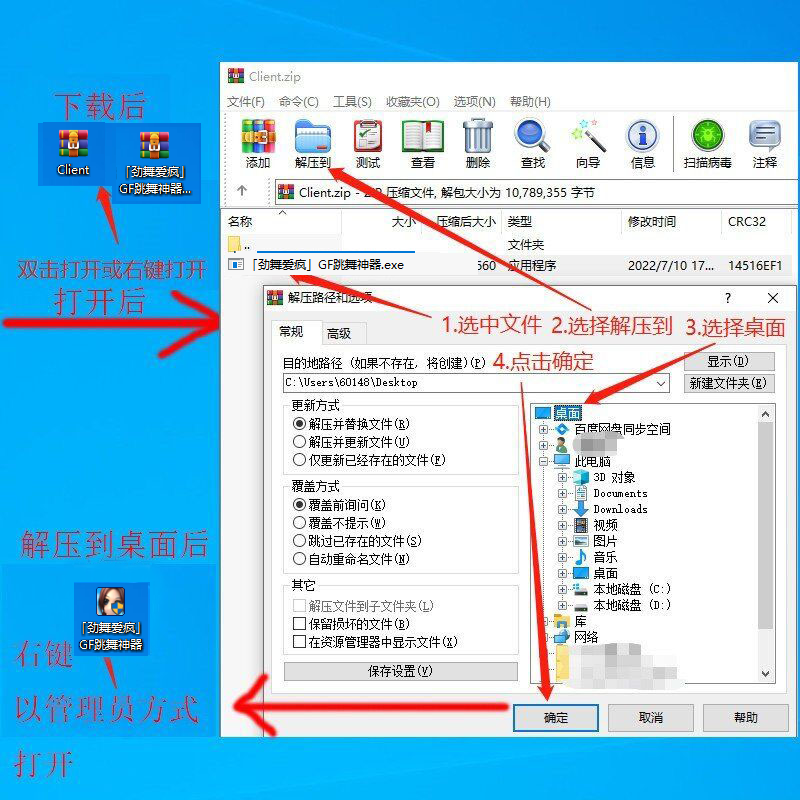 注意 以下为私服通用版 解压方式 务必把整个文件夹都解压出去!